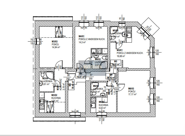 Została zrobiona inwentaryzacja -powierzchnia użytkowa 184,7 m2 (można wyodrębnić 1 lokal usługowy i 6 lokali mieszkalnych + przynależne wysokie piwnice 73m2 .